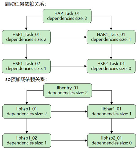 模块 启动任务 so预加载任务 entry HAP_Task_01 libentry_01 hsp1 HSP1_Task_01 HSP1_Task_02 libhsp1_01 libhsp1_02 hsp2 HSP2_Task_01 libhsp2_01 har HAR1_Task_01 libhar1_01 图4 启动任务与so预加载依赖关系图
