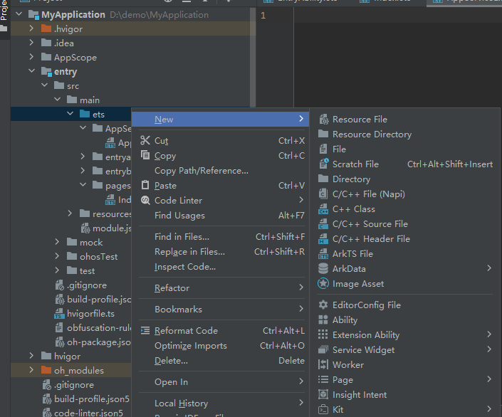 在工程Module对应的ets目录下,右键选择“New > Directory”,新建一个目录并命名为myappserviceextability。