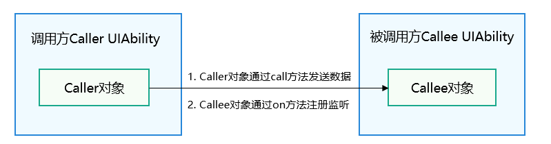 - CallerAbility调用startAbilityByCall()接口获取Caller,并使用Caller对象的call方法向CalleeAbility发送数据。