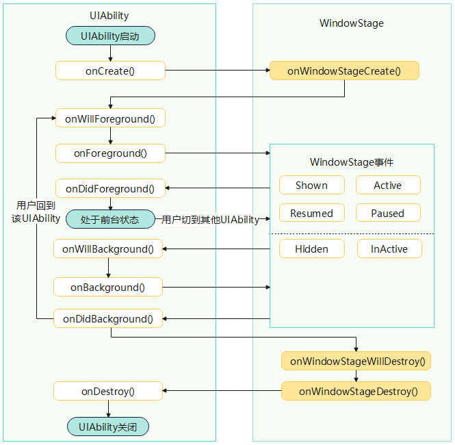 UIAbility实例创建完成之后,在进入前台之前,系统会创建一个WindowStage。WindowStage创建完成后会进入onWindowStageCreate()回调,开发者可以在该回调中进行UI加载、WindowStage的事件订阅。