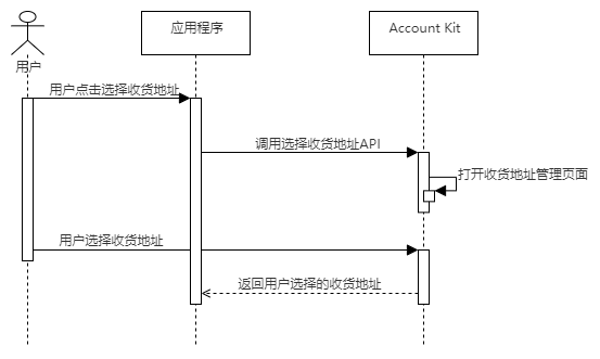 - 用户需要使用收货地址时,应用程序调用选择收货地址API,打开华为账号收货地址管理页面。
