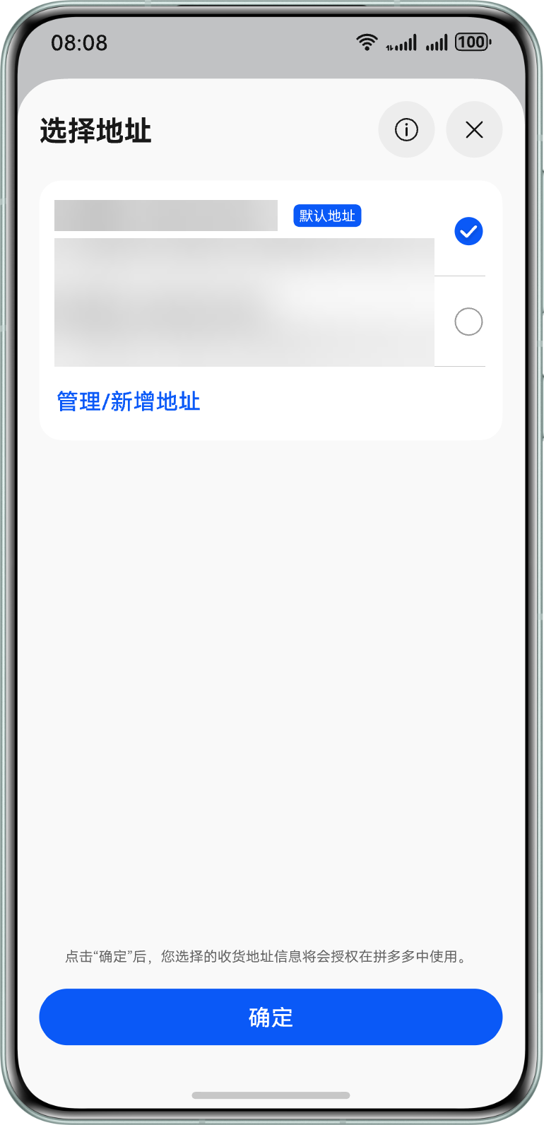 - 用户可以在收货地址管理页面添加新的收货地址或者选择已有收货地址,点击确认后,选择的收货地址将返回给应用。