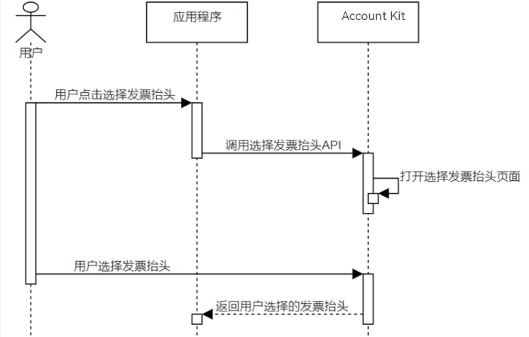 - 用户需要使用发票抬头时,应用程序调用选择发票抬头API,打开华为账号发票抬头选择页。