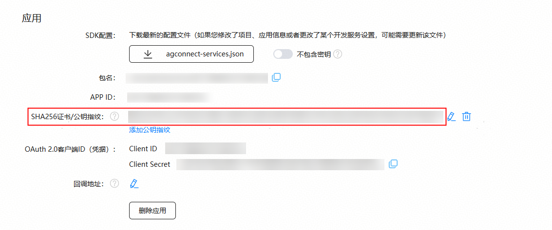 检查公钥指纹是否配置成功:请在开发与服务中选择对应的项目和应用,检查是否已成功配置该应用的公钥指纹。