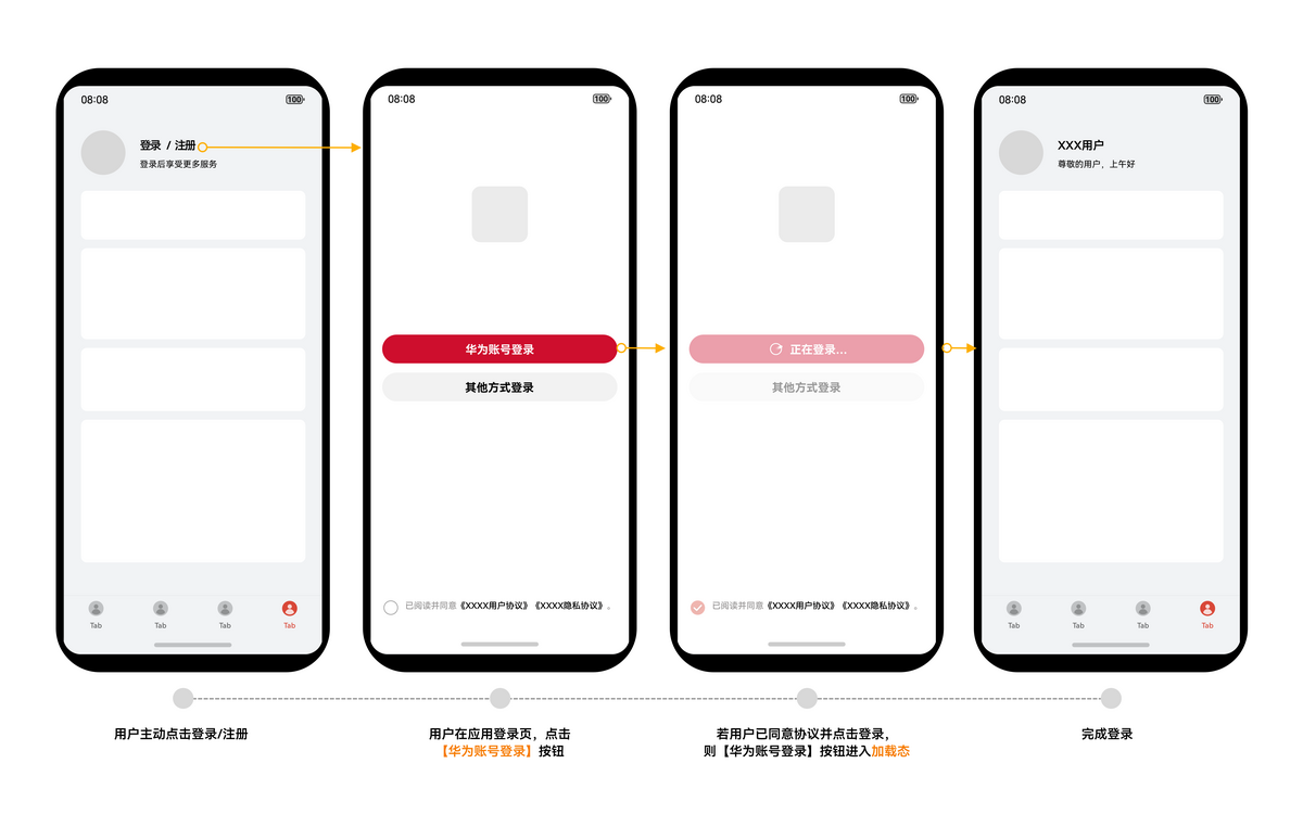 账号登录按钮的用户体验和UX设计需符合【华为账号登录】按钮规范,不符合规范的UX设计可能会对应用上架和用户体验带来影响。