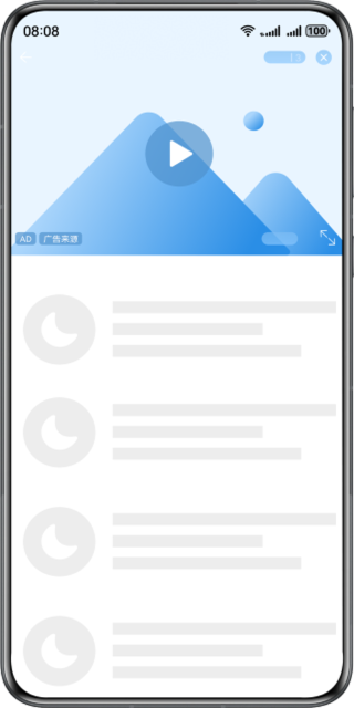@Entry@Componentstruct Index {// 请求到的广告内容@State ads: advertising.Advertisement[] = [];// 倒计时文案@State countDownText: string = '';// 贴片广告播放状态@State rollPlayState: number = 1;// 是否播放正片@State isPlayVideo: boolean = false;// 视频宽高比@State ratio: number = 16 / 9;// 广告展示参数,开发者可根据项目实际情况设置private adDisplayOptions: advertising.AdDisplayOptions = {// 是否静音mute: true};// 已经播放的贴片广告数量private playedAdSize: number = 0;// 用于渲染右上角倒计时private countDownTxtPlaceholder: string = '%d | VIP免广告';private context: common.UIAbilityContext = this.getUIContext().getHostContext() as common.UIAbilityContext;// ...aboutToDisappear(): void {// 设置屏幕方向为默认值,开发者可根据项目实际情况修改void this.setWindowPreferredOrientation(window.Orientation.UNSPECIFIED).catch((error: BusinessError) => {hilog.error(0x0000, 'testTag',`Failed to setWindowPreferredOrientation. Code is ${error.code}, message is ${error.message}`);});// 显示导航栏、状态栏、底部导航条,开发者可根据项目实际情况修改void this.setWindowSystemBar(['status', 'navigation']).catch((error: BusinessError) => {hilog.error(0x0000, 'testTag',`Failed to setWindowSystemBar. Code is ${error.code}, message is ${error.message}`);});}build() {Stack({ alignContent: Alignment.TopEnd }) {if (!this.isPlayVideo && this.ads.length > 0) {AdComponent({ads: [...this.ads],rollPlayState: this.rollPlayState,displayOptions: this.adDisplayOptions,interactionListener: {// 广告状态变化回调onStatusChanged: (status: string, ad: advertising.Advertisement, data: string) => {switch (status) {case 'onAdFail':hilog.error(0x0000, 'testTag', 'Status is onAdFail');this.isPlayVideo = true;break;case 'onPortrait':hilog.info(0x0000, 'testTag', 'Status is onPortrait');// 设置屏幕方向为竖屏void this.setWindowPreferredOrientation(window.Orientation.PORTRAIT).catch((error: BusinessError) => {hilog.error(0x0000, 'testTag',`Failed to setWindowPreferredOrientation. Code is ${error.code}, message is ${error.message}`);});// 显示导航栏、状态栏、底部导航条void this.setWindowSystemBar(['status', 'navigation']).catch((error: BusinessError) => {hilog.error(0x0000, 'testTag',`Failed to setWindowSystemBar. Code is ${error.code}, message is ${error.message}`);});// 竖屏时还原宽高比this.ratio = 16 / 9;break;case 'onLandscape':hilog.info(0x0000, 'testTag', 'Status is onLandscape');// 设置屏幕方向为横屏void this.setWindowPreferredOrientation(window.Orientation.LANDSCAPE).catch((error: BusinessError) => {hilog.error(0x0000, 'testTag',`Failed to setWindowPreferredOrientation. Code is ${error.code}, message is ${error.message}`);});// 隐藏导航栏、状态栏、底部导航条void this.setWindowSystemBar([]).catch((error: BusinessError) => {hilog.error(0x0000, 'testTag',`Failed to setWindowSystemBar. Code is ${error.code}, message is ${error.message}`);});// 横屏时忽略宽高比this.ratio = -1;break;case 'onMediaProgress':hilog.info(0x0000, 'testTag', 'Status is onMediaProgress');break;case 'onMediaStart':hilog.info(0x0000, 'testTag', 'Status is onMediaStart');break;case 'onMediaPause':hilog.info(0x0000, 'testTag', 'Status is onMediaPause');break;case 'onMediaStop':hilog.info(0x0000, 'testTag', 'Status is onMediaStop');break;case 'onMediaComplete':hilog.info(0x0000, 'testTag', 'Status is onMediaComplete');// 所有广告都播放完毕后,开始播放正片this.playedAdSize++;if (this.playedAdSize === this.ads.length) {this.isPlayVideo = true;}break;case 'onMediaError':hilog.error(0x0000, 'testTag', 'Status is onMediaError');break;case 'onMediaCountdown':hilog.info(0x0000, 'testTag', 'Status is onMediaCountdown');const parseData: Record<string, Object> = this.safeParseData(data);this.countDownText = this.countDownTxtPlaceholder.replace('%d', String(parseData.countdownTime));break;case 'onBackClicked':hilog.info(0x0000, 'testTag', 'Status is onBackClicked');this.getUIContext().getRouter().back();break;}}}}).visibility(!this.isPlayVideo ? Visibility.Visible : Visibility.None).width('100%').height('100%')Text(this.countDownText).fontSize(12).lineHeight(12).maxLines(1).textAlign(TextAlign.Center).fontColor(Color.White).textOverflow({ overflow: TextOverflow.Ellipsis }).backgroundColor('#66000000').border({ radius: 25 }).padding(8).margin(16).height(24).onClick(() => {hilog.info(0x0000, 'testTag', 'OnVipClicked, do something...');this.isPlayVideo = true;}).visibility(this.countDownText ? Visibility.Visible : Visibility.None)}Video({// 广告后播放的视频,开发者需根据项目实际情况设置src: $rawfile('videoTest.mp4'),// 播放视频的预览图,开发者需根据项目实际情况设置previewUri: $r('app.media.video_preview'),controller: new VideoController()}).visibility(this.isPlayVideo ? Visibility.Visible : Visibility.None).autoPlay(this.isPlayVideo).controls(false).width('100%').height('100%')}.width('100%').height('100%').aspectRatio(this.ratio)}private async setWindowPreferredOrientation(orientation: Orientation): Promise<void> {try {const win: window.Window = await window.getLastWindow(this.context);await win.setPreferredOrientation(orientation);} catch (e) {hilog.error(0x0000, 'testTag', `Failed to set preferred orientation. Code is ${e.code}, message is ${e.message}`);}}private async setWindowSystemBar(names: Array<'status' | 'navigation'>): Promise<void> {try {const win: window.Window = await window.getLastWindow(this.context);await win.setWindowSystemBarEnable(names);} catch (e) {hilog.error(0x0000, 'testTag', `Failed to set window system bar. Code is ${e.code}, message is ${e.message}`);}}private safeParseData(data: string): Record<string, Object> {try {if (typeof data === 'string') {return JSON.parse(data);}return JSON.parse(JSON.stringify(data));} catch (e) {hilog.error(0x0000, 'testTag', `Failed to parse data. Code is ${e.code}, message 