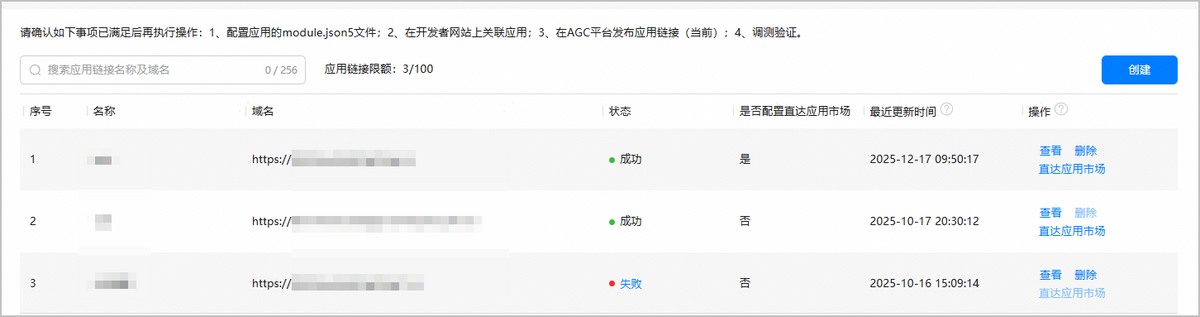 - 检查在AGC配置的域名发布是否成功。