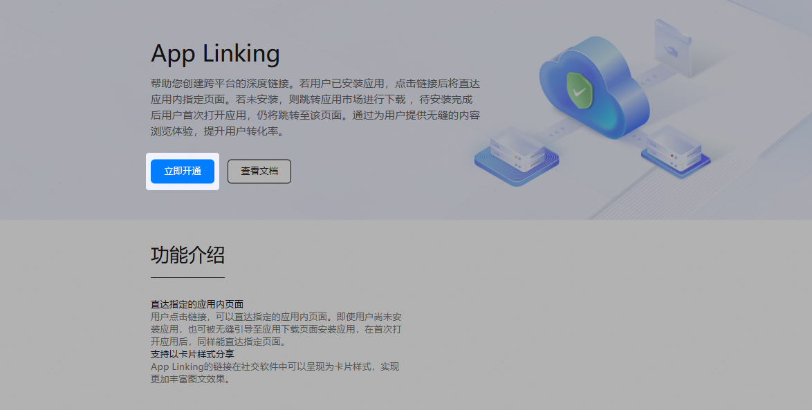 首次使用App Linking服务前,需要先开通此服务。如果已经开通,可跳过本章节。