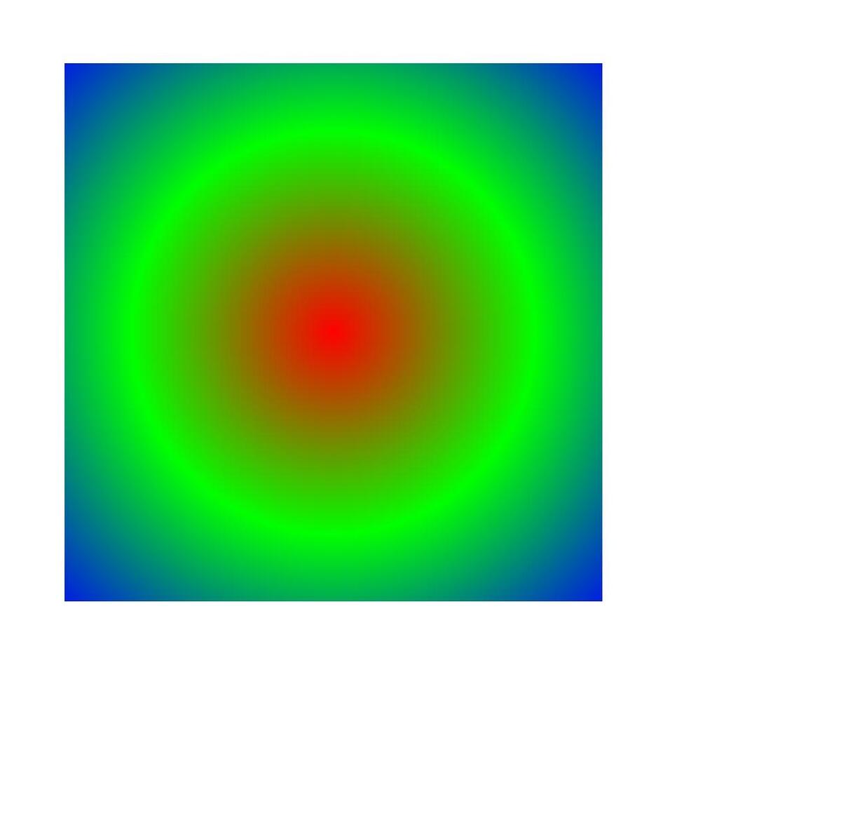 其实现方式与线性渐变着色器类似,不同的是,径向渐变是由圆心开始向外径向渐变的。
