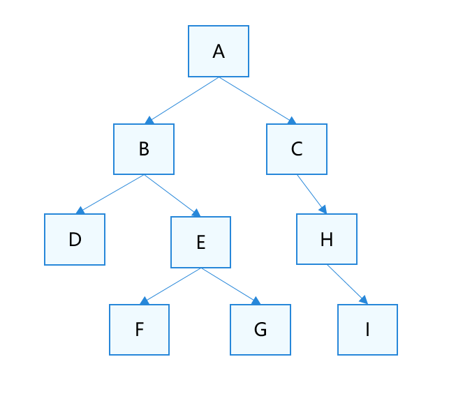 以下图为例,每个父节点加载对应子节点,并按import顺序执行同级。模块图文件执行顺序为:D->F->G->E->B->I->H->C->A。