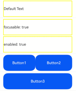 运行后点击Button1,请求焦点给Row组件,Row组件的第一个可获焦子节点Button2获焦。