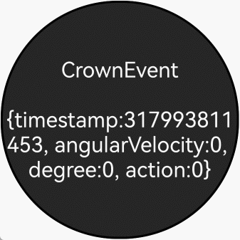 event.stopPropagation();this.message = "CrownEvent\n\n" + JSON.stringify(event);hilog.debug(0x0000, 'Tag',"action:%{public}d, angularVelocity:%{public}f, degree:%{public}f, timestamp:%{public}f",event.action, event.angularVelocity, event.degree, event.timestamp);