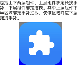 以下示例中,Image和Stack两个组件位于同一区域。长按Stack组件的上半部分可触发挂载在Stack组件上的长按手势,长按Stack组件的下半部分则会响应Image组件的拖拽操作。