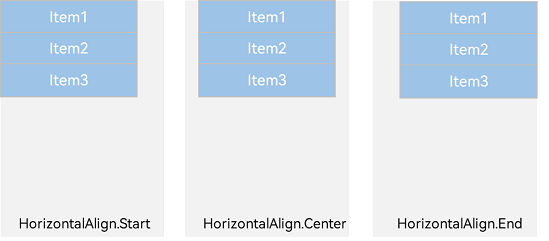HorizontalAlign.Start:子元素在水平方向左对齐。