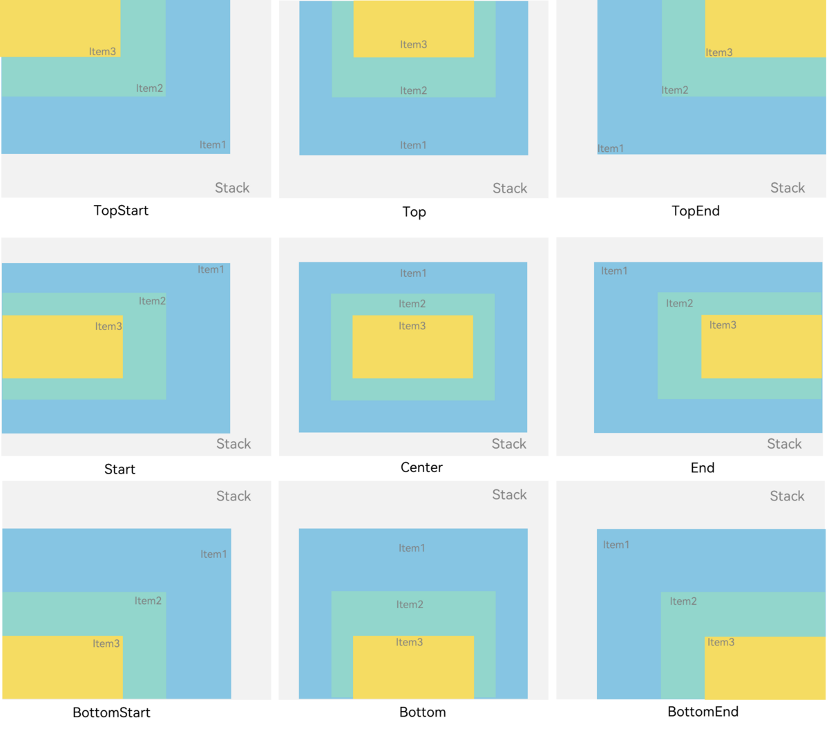 图2 Stack容器内元素的对齐方式