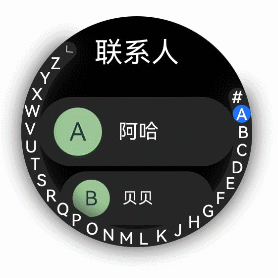 许多应用需要监测列表的滚动位置变动并作出响应,或通过调整滚动位置实现列表的快速定位。例如,在联系人列表滚动时,当列表滚动至不同首字母开头的联系人,外部索引条应更新至相应的字母位置。当用户选择外部索引条上的索引项时,列表应跳转至对应位置。为此,需使用弧形索引条组件ArcAlphabetIndexer。