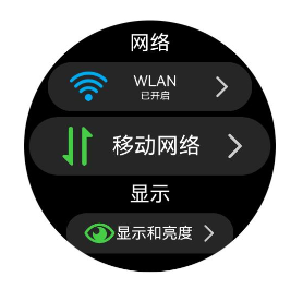 在弧形列表中,列表项默认具有在接近上下两端时自动缩放的效果。然而,在某些情况下,可能不希望有这种缩放效果。此时,可以通过设置ArcListItem的autoScale属性为false来禁用该效果。例如,如图5所示,“网络”和“显示”两个列表项,在关闭了自动缩放属性后,无论它们所处的位置如何,都不会出现缩放效果。