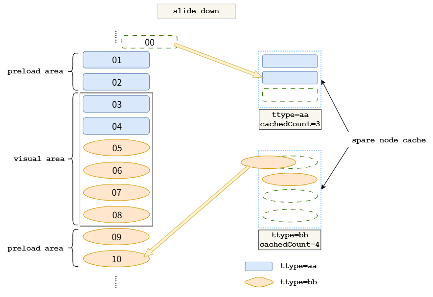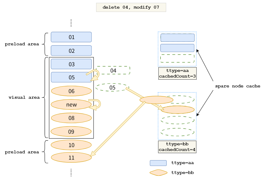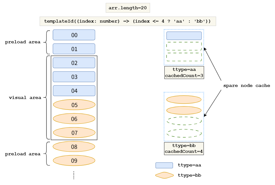 }, { cachedCount: 3 }) // 'A'模板的缓存列表容量为3