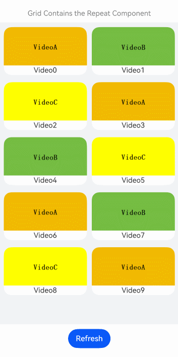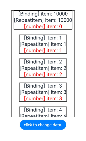 - Repeat还增强了节点复用能力,提高了长列表滑动和数据更新的渲染性能。
