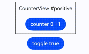 修改CounterView的counter状态变量:CounterView子组件(label为 'CounterView #positive')重新渲染并保留状态变量值。