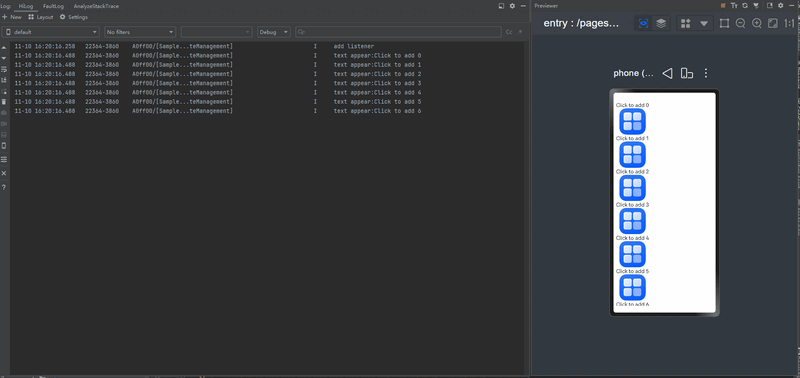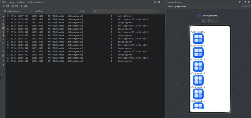 可以观察到UI能够正常刷新,图片没有“闪烁”,且没有输出日志信息,说明没有对Text组件和Image组件进行重建。