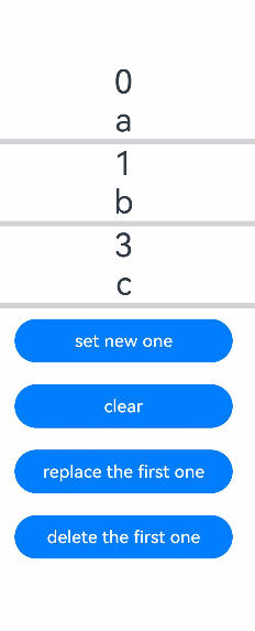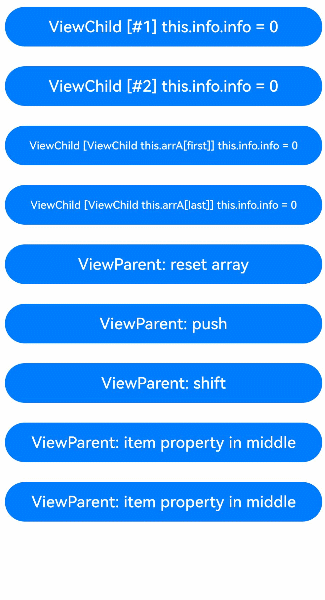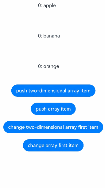 - 如果数据源是数组,则可以观察到数组项的替换,如果数据源是class,可观察到class的属性的变化,示例请参考对象数组。
