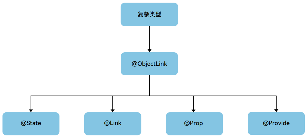 - 在子组件中使用@ObjectLink装饰的状态变量,用于接收父组件@Observed装饰的类实例,从而建立双向数据绑定。
