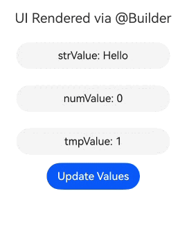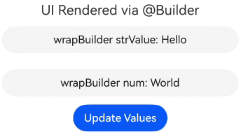 - 如果@Builder传入的参数是两个或两个以上,且未使用按回调传递参数,不会触发动态渲染UI,请参考@Builder存在两个或两个以上参数。