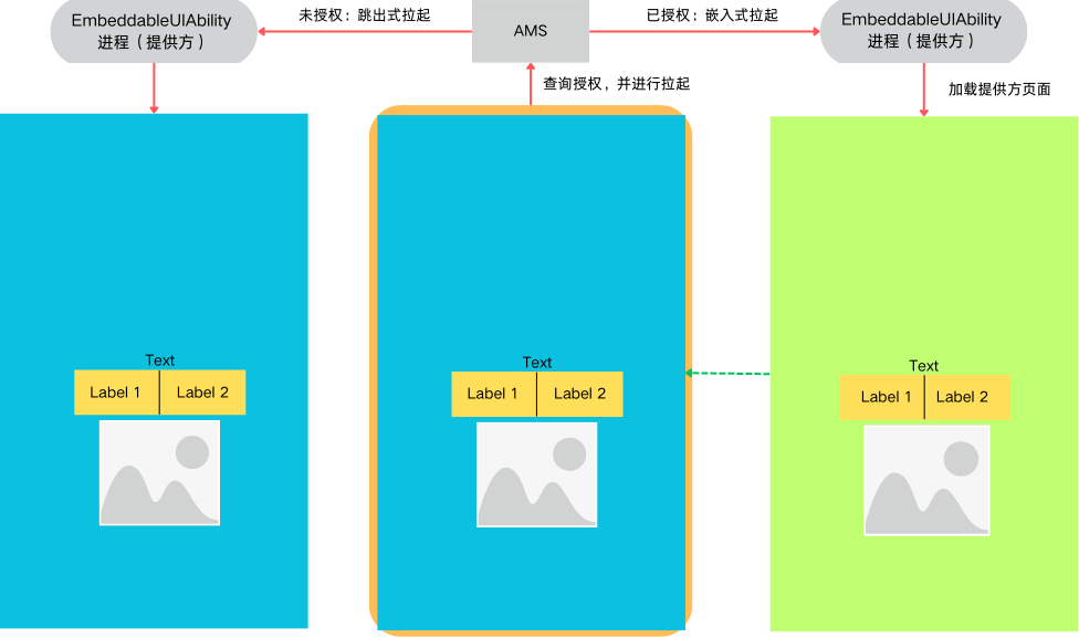 - 当被拉起方未授权使用方可以嵌入式运行元服务时,使用方跳出式拉起元服务