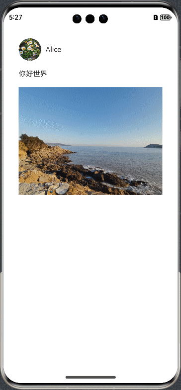 更多的场景中,需要对一个页面的元素与另一个页面的元素添加一镜到底动效。可以通过geometryTransition搭配模态转场接口实现。以点击头像弹出个人信息页的demo为例: