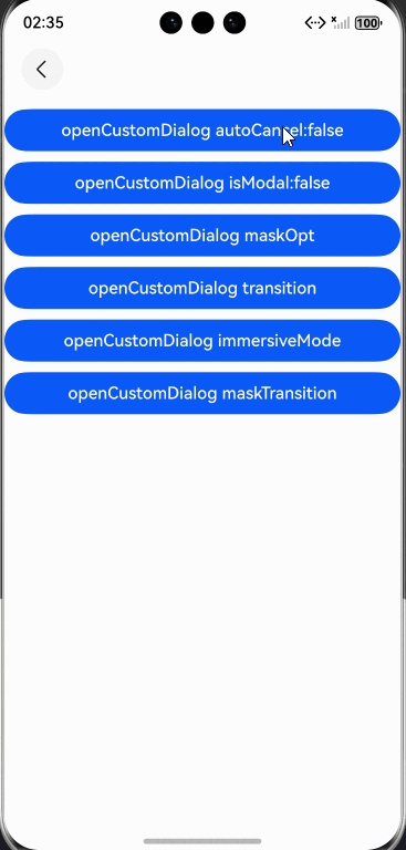 ArkUI提供多种弹出框,不同类型的弹出框具备不同的蒙层定制能力。详情请参阅下表: