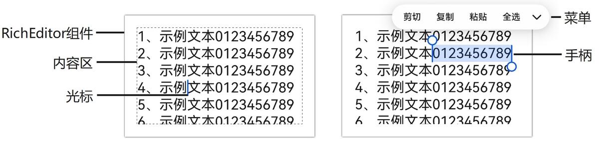 开发者可以创建基于属性字符串进行内容管理的RichEditor组件或创建基于Span进行内容管理的RichEditor组件。