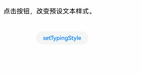 // 请将$r('app.string.SetUserPresetTextStyles_Button_1')替换为实际资源文件,在本示例中该资源文件的value值为"setTypingStyle"