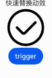 @State triggerValueReplace: number = 0;replaceFlag: boolean = true;Column() {// 请将$r('app.string.quick_replacement_animation')替换为实际资源文件,在本示例中该资源文件的value值为"快速替换动效"Text($r('app.string.quick_replacement_animation'));SymbolGlyph(this.replaceFlag ? $r('sys.symbol.checkmark_circle') : $r('sys.symbol.repeat_1')).fontSize(96).symbolEffect(new ReplaceSymbolEffect(EffectScope.WHOLE, ReplaceEffectType.CROSS_FADE),this.triggerValueReplace)Button('trigger').onClick(() => {this.replaceFlag = !this.replaceFlag;this.triggerValueReplace = this.triggerValueReplace + 1;})}