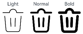 Row() {Column() {Text('Light')Text() {SymbolSpan($r('sys.symbol.ohos_trash')).fontWeight(FontWeight.Lighter).fontSize(96)}}Column() {Text('Normal')Text() {SymbolSpan($r('sys.symbol.ohos_trash')).fontWeight(FontWeight.Normal).fontSize(96)}}Column() {Text('Bold')Text() {SymbolSpan($r('sys.symbol.ohos_trash')).fontWeight(FontWeight.Bold).fontSize(96)}}}