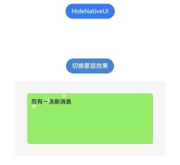 #include <arkui/native_node_napi.h>#include <arkui/native_type.h>#include <js_native_api.h>#include "NativeEntry.h"#include "ArkUICustomContainerNode.h"#include "ArkUICustomNode.h"#include "ArkUIMessageMaskNode.h"// 全局环境变量声明static napi_env g_env = nullptr;// ...namespace NativeModule {// ...napi_value CreateNativeMessageRoot(napi_env env, napi_callback_info info){constexpr int32_t messageMaskWidth = 400;constexpr int32_t messageMaskHeight = 200;size_t argc = 1;napi_value args[1] = {nullptr};napi_get_cb_info(env, info, &argc, args, nullptr, nullptr);// 避免重复创建导致的重复挂载NativeEntry::GetInstance()->DisposeRootNode();// 获取NodeContentArkUI_NodeContentHandle contentHandle;OH_ArkUI_GetNodeContentFromNapiValue(env, args[0], &contentHandle);NativeEntry::GetInstance()->SetContentHandle(contentHandle);auto nodeAPI = NativeModuleInstance::GetInstance()->GetNativeNodeAPI();auto rootColumn = std::make_shared<ArkUIColumnNode>();auto rootColumnHandle = rootColumn->GetHandle();// 设置根容器样式ArkUI_NumberValue paddingValue[] = {{.f32 = 20.0f}};ArkUI_AttributeItem paddingItem = {paddingValue, 1};nodeAPI->setAttribute(rootColumnHandle, NODE_PADDING, &paddingItem);ArkUI_NumberValue bgColorValue[] = {{.u32 = 0xFFFFFFFF}};ArkUI_AttributeItem bgColorItem = {bgColorValue, 1};nodeAPI->setAttribute(rootColumnHandle, NODE_BACKGROUND_COLOR, &bgColorItem);// 创建消息气泡组件auto maskNode = std::make_shared<ArkUIMessageMaskNode>();maskNode->SetWidth(messageMaskWidth);maskNode->SetHeight(messageMaskHeight);maskNode->SetMessage("您有一条新消息");maskNode->SetMaskVisible(false); // 初始不显示蒙层// 创建按钮用于切换蒙层效果auto buttonNode = std::make_shared<ArkUINode>(nodeAPI->createNode(ARKUI_NODE_BUTTON));auto buttonHandle = buttonNode->GetHandle();// 设置按钮文本ArkUI_AttributeItem labelItem;const char* buttonLabel = "切换蒙层效果";labelItem.string = buttonLabel;nodeAPI->setAttribute(buttonHandle, NODE_BUTTON_LABEL, &labelItem);// 设置按钮样式ArkUI_NumberValue marginValue[] = {{.f32 = 20.0f}};ArkUI_AttributeItem marginItem = {marginValue, 1};nodeAPI->setAttribute(buttonHandle, NODE_MARGIN, &marginItem);ArkUI_NumberValue btnBgColorValue[] = {{.u32 = 0xFF2787D9}};ArkUI_AttributeItem btnBgColorItem = {btnBgColorValue, 1};nodeAPI->setAttribute(buttonHandle, NODE_BACKGROUND_COLOR, &btnBgColorItem);// 设置按钮点击事件auto onClick = [](ArkUI_NodeEvent *event) {auto maskNode = (ArkUIMessageMaskNode *)OH_ArkUI_NodeEvent_GetUserData(event);static bool highlighted = false;highlighted = !highlighted;maskNode->SetMaskVisible(highlighted);};buttonNode->RegisterOnClick(onClick, maskNode.get());// 将组件添加到根容器rootColumn->AddChild(buttonNode);rootColumn->AddChild(maskNode);// 保持Native侧对象到管理类中,维护生命周期NativeEntry::GetInstance()->SetRootNode(rootColumn);return nullptr;}napi_value DestroyNativeRoot(napi_env env, napi_callback_info info){// 从管理类中释放Native侧对象。NativeEntry::GetInstance()->DisposeRootNode();return nullptr;}} // namespace NativeModule