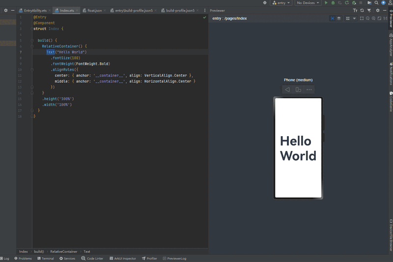 ArkTS应用/元服务均支持页面预览。页面预览通过在工程的ets文件中,给自定义组件添加@Entry装饰器,即可以查看当前UI页面效果。