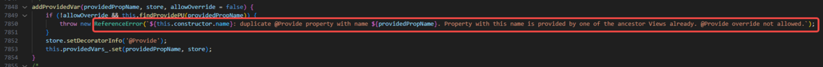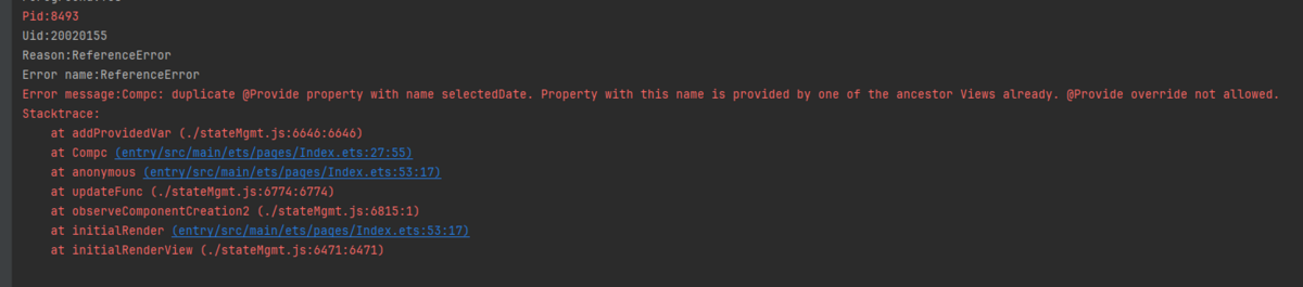报错发生在@Provide初始化阶段,原因是@Provide重写需要声明allowOverride。声明后,别名和属性名都可以被覆盖。如果未声明且存在重复的别名或属性名,将导致错误(duplicate @Provide property with name xxxxx)。