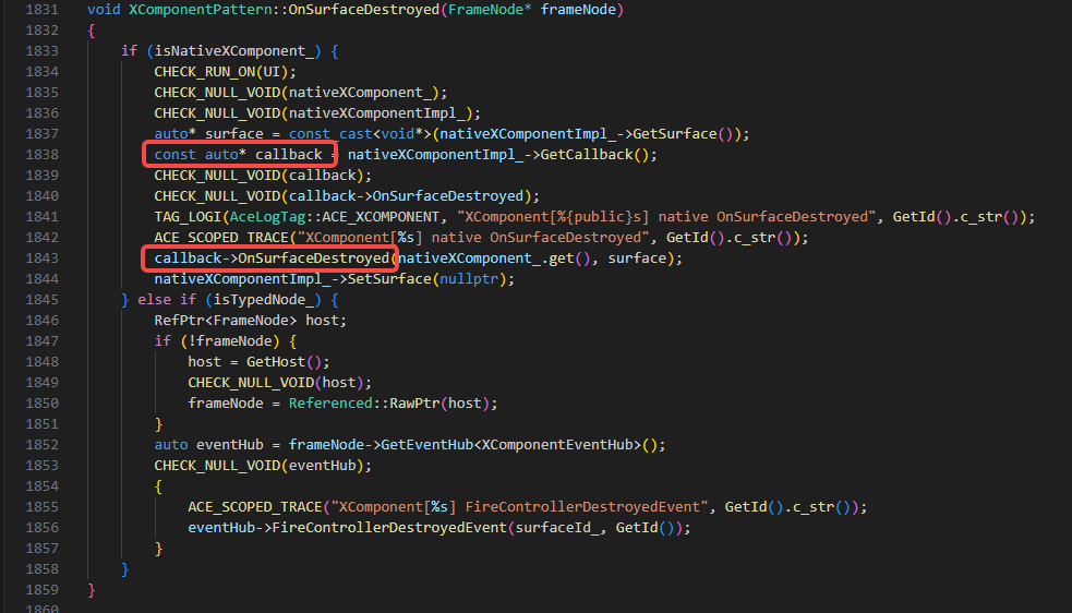 #01 pc 0000000002615120 /system/lib64/platformsdk/libace_compatible.z.so(OHOS::Ace::NG::XComponentPattern::OnSurfaceDestroyed()+468)