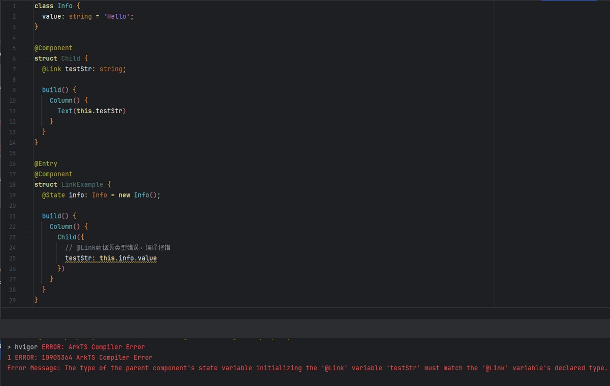 排查@Link的数据源,确认其是否为状态变量,并确保数据源的类型与@Link的类型一致。