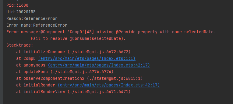 排查组件树时,确保@Provide装饰的变量在祖先组件中定义,这些变量被视为提供给后代的状态变量。@Consume装饰的变量在后代组件中使用,用于绑定祖先组件提供的变量。如果@Consume绑定的key在祖先组件中未定义,会导致报错。请从用法角度进行排查。