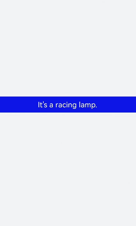 <marquee style="width: 100%;height: 80px; color: #ffffff; background-color: #0820ef;padding-left: 200px;">It's a racing lamp.</marquee>