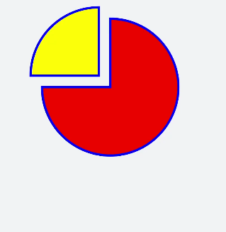 <path d="M275,175 v-150 a150 150 0 0 0 -150 150 z" fill="yellow" stroke="blue" stroke-width="5">