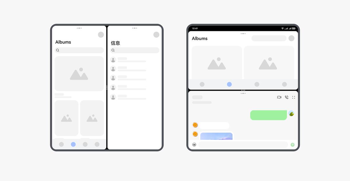 | 手机折叠屏展开态 | 1:1 | “上下分屏”和 “左右分屏”: 1:1 |