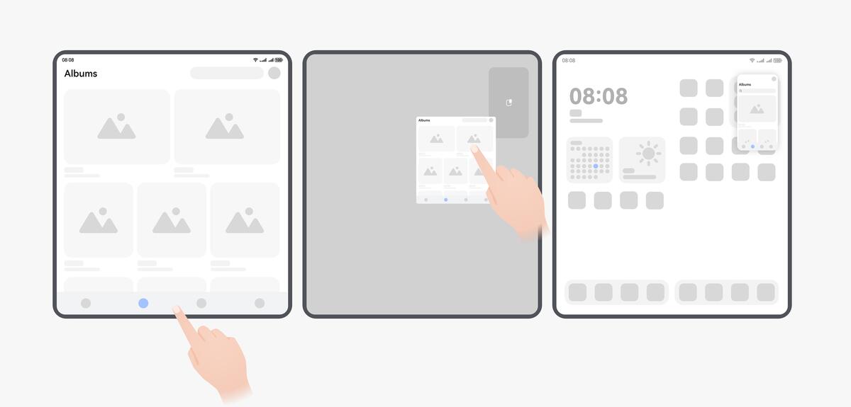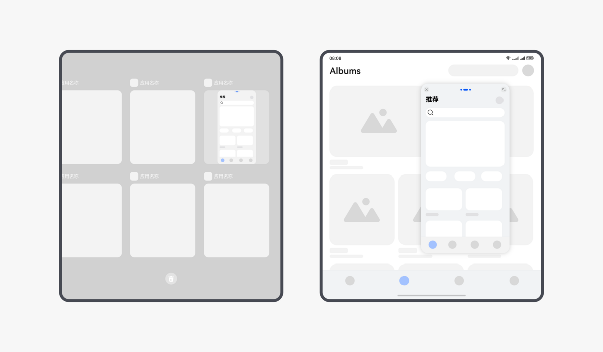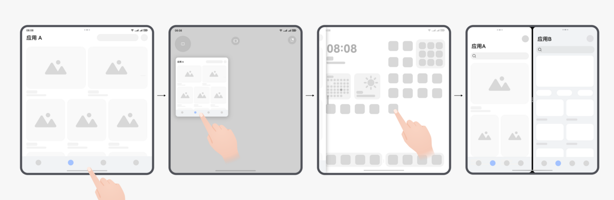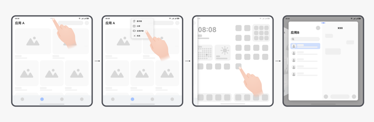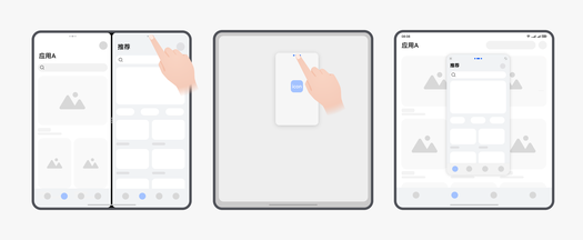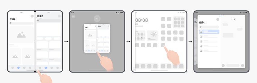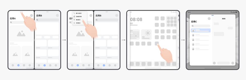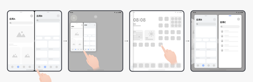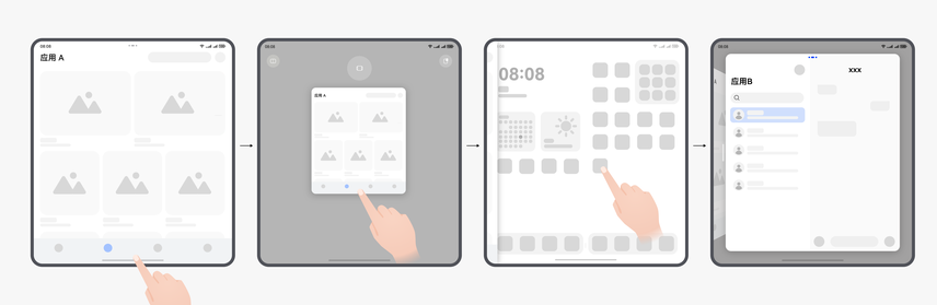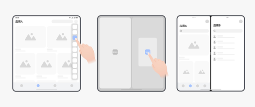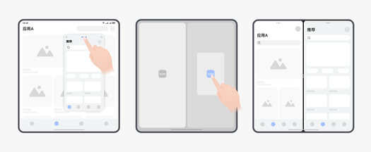 全景多窗旨在帮助用户在折叠机设备展开态时高效处理多个任务。通过全景多窗,用户可以突破物理屏幕的围墙,实现在同一屏幕上同时运行多个应用,并在这些应用之间快速切换。