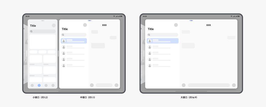 目前全景多窗在双折叠设备上支持小窗口与大窗口两个档位显示,在三折叠与Tablet设备上支持小窗口、中窗口、大窗口三个档位显示,且窗口的档位与位置支持调节。