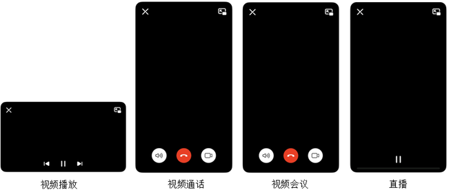 - 窗口控制:包括“关闭”和“恢复全屏窗口”功能。点按“关闭”按钮后,画中画窗口关闭;点按“恢复全屏窗口”按钮后,将从画中画窗口恢复到应用原始界面。