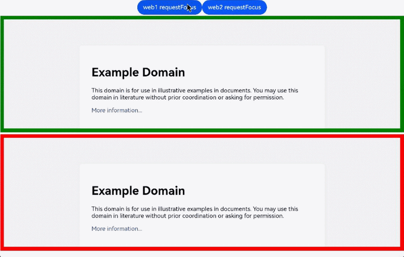 - 通过requestFocus主动请求Web组件获焦:当应用内有多个组件时,开发者可通过Web组件的requestFocus接口,主动将焦点转移到Web组件。
