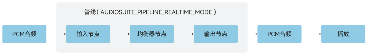 struct AudioDataInfo {uint8_t *buffer = nullptr; // 音频数据。int32_t bufferSize = 0; // 音频数据总大小。int32_t totalWriteSize = 0; // 处理过的音频数据总大小。};// 输入节点请求数据的回调函数。static int32_t InputNodeWriteDataCallBack(OH_AudioNode *audioNode,void *userData,void *audioData,int32_t audioDataSize,bool *finished){if ((audioNode == nullptr) || (userData == nullptr) ||(audioData == nullptr) || (audioDataSize <= 0) || (finished == nullptr)) {return -1;}struct AudioDataInfo *info = static_cast<struct AudioDataInfo *>(userData);// 要处理的音频大小。int32_t actualDataSize = std::min(audioDataSize, info->bufferSize - info->totalWriteSize);// 将PCM音频数据写入audioData。memcpy(static_cast<void *>(audioData), info->buffer + info->totalWriteSize, actualDataSize);info->totalWriteSize += actualDataSize;// 音频数据全部处理完。if (info->totalWriteSize >= info->bufferSize) {*finished = true;}return actualDataSize;}// 创建引擎。OH_AudioSuiteEngine *audioSuiteEngine = nullptr;OH_AudioSuiteEngine_Create(&audioSuiteEngine);// 创建实时渲染的管线。OH_AudioSuitePipeline *audioSuitePipeline;OH_AudioSuiteEngine_CreatePipeline(audioSuiteEngine, &audioSuitePipeline,OH_AudioSuite_PipelineWorkMode::AUDIOSUITE_PIPELINE_REALTIME_MODE);// 创建节点构造器。OH_AudioNodeBuilder *nodeBuilder = nullptr;OH_AudioSuiteNodeBuilder_Create(&nodeBuilder);OH_AudioSuiteNodeBuilder_SetNodeType(nodeBuilder, OH_AudioNode_Type::INPUT_NODE_TYPE_DEFAULT);// 配置音频数据格式,开发者根据要处理的音频数据格式设置采样率、声道分布、声道数、位深、编码格式参数。OH_AudioFormat audioFormatInput;audioFormatInput.samplingRate = OH_Audio_SampleRate::SAMPLE_RATE_48000;audioFormatInput.channelLayout = OH_AudioChannelLayout::CH_LAYOUT_STEREO;audioFormatInput.channelCount = 2;audioFormatInput.sampleFormat = OH_Audio_SampleFormat::AUDIO_SAMPLE_S16LE;audioFormatInput.encodingType = OH_Audio_EncodingType::AUDIO_ENCODING_TYPE_RAW;OH_AudioSuiteNodeBuilder_SetFormat(nodeBuilder, audioFormatInput);// 设置音频流的回调。struct AudioDataInfo audioInfo;audioInfo.buffer = nullptr; // 开发者根据业务场景存放要处理的音频数据。audioInfo.bufferSize = 0; // 开发者根据业务场景存放要处理的音频数据大小。audioInfo.totalWriteSize = 0;void *userData = static_cast<void *>(&audioInfo);OH_AudioSuiteNodeBuilder_SetRequestDataCallback(nodeBuilder, InputNodeWriteDataCallBack, userData);// 创建输入节点。OH_AudioNode *inputNode = nullptr;OH_AudioSuiteEngine_CreateNode(audioSuitePipeline, nodeBuilder, &inputNode);// 重置构造器配置并设置为均衡器节点类型。OH_AudioSuiteNodeBuilder_Reset(nodeBuilder);OH_AudioSuiteNodeBuilder_SetNodeType(nodeBuilder, OH_AudioNode_Type::EFFECT_NODE_TYPE_EQUALIZER);// 创建均衡器节点。OH_AudioNode *eqNode = nullptr;OH_AudioSuiteEngine_CreateNode(audioSuitePipeline, nodeBuilder, &eqNode);// 设置均衡器节点效果为默认。OH_AudioSuiteEngine_SetEqualizerFrequencyBandGains(eqNode, OH_EQUALIZER_PARAM_DEFAULT);// 重置构造器配置并设置为输出节点类型。OH_AudioSuiteNodeBuilder_Reset(nodeBuilder);OH_AudioSuiteNodeBuilder_SetNodeType(nodeBuilder, OH_AudioNode_Type::OUTPUT_NODE_TYPE_DEFAULT);// 配置音频数据格式,开发者根据预期输出的音频格式设置采样率、声道分布、声道数、位深、编码格式参数。OH_AudioFormat audioFormatOutput;audioFormatOutput.samplingRate = OH_Audio_SampleRate::SAMPLE_RATE_48000;audioFormatOutput.channelLayout = OH_AudioChannelLayout::CH_LAYOUT_STEREO;audioFormatOutput.channelCount = 2;audioFormatOutput.sampleFormat = OH_Audio_SampleFormat::AUDIO_SAMPLE_S16LE;audioFormatOutput.encodingType = OH_Audio_EncodingType::AUDIO_ENCODING_TYPE_RAW;OH_AudioSuiteNodeBuilder_SetFormat(nodeBuilder, audioFormatOutput);// 创建输出节点。OH_AudioNode *outputNode = nullptr;OH_AudioSuiteEngine_CreateNode(audioSuitePipeline, nodeBuilder, &outputNode);// 销毁节点构造器。OH_AudioSuiteNodeBuilder_Destroy(nodeBuilder);// 连接各个节点组成组网。OH_AudioSuiteEngine_ConnectNodes(inputNode, eqNode);OH_AudioSuiteEngine_ConnectNodes(eqNode, outputNode);离线编辑和实时渲染在创建管线时有区别。