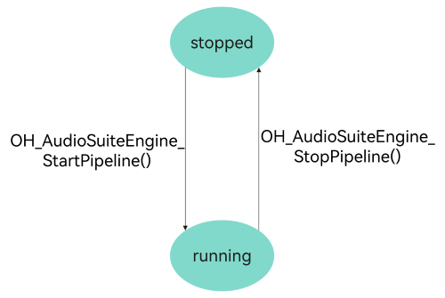 | stopped | 初始状态,或者工作状态经过OH_AudioSuiteEngine_StopPipeline()命令进入该状态。 切换到stopped状态下,各节点将释放缓存。 |